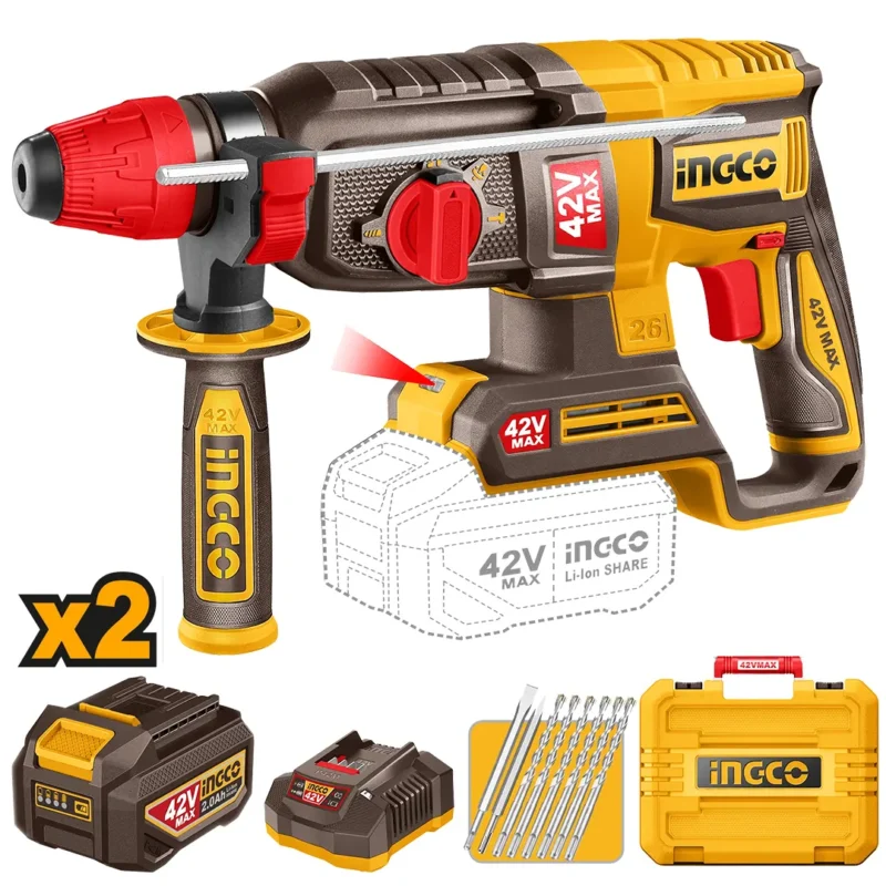 Marteau perforateur ingco 20v-4ah 2b 2m 1c valise