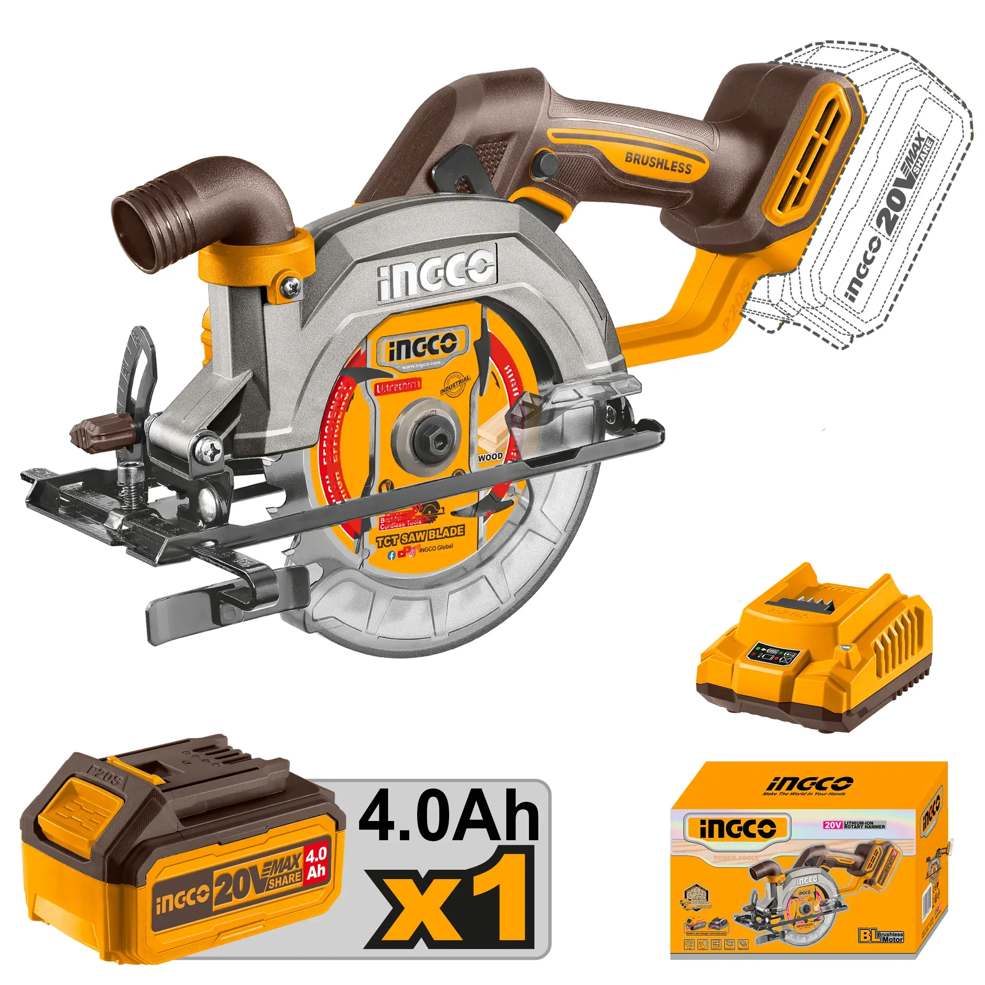 Scie circulaire sans fil 20V 4Ah INGCO
